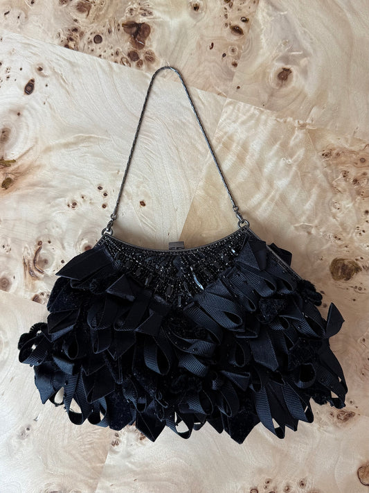 BADGLEY MISCHKA Vintage Mini Embellished Fringe Beaded Evening Bag