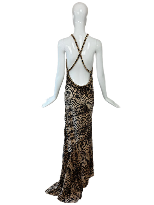 ROBERTO CAVALLI 2006 Vintage Silk Animal Print Gown w. Gold Chains