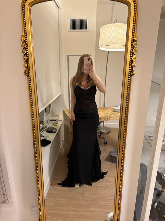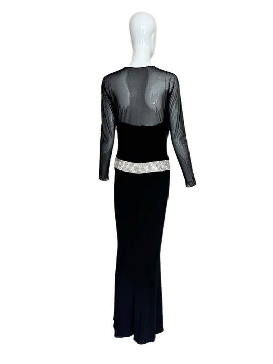 VERA WANG Vintage Black Mesh Panel Evening Gown