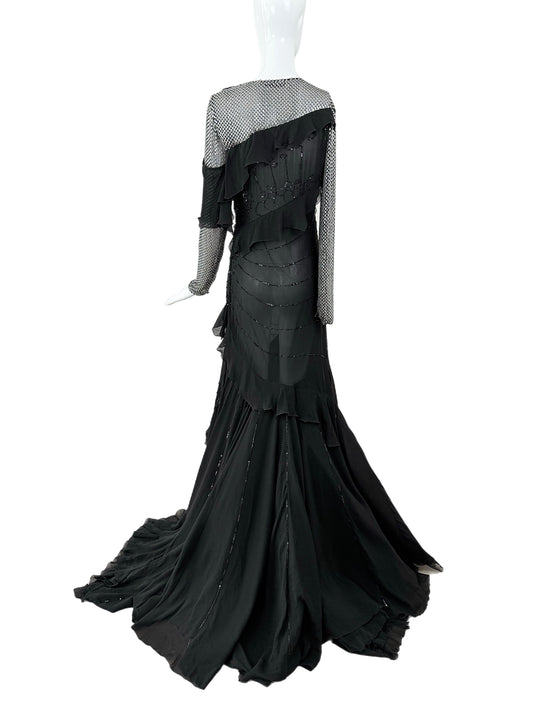 VALENTINO 2004 Vintage Black Silk Beaded Evening Gown