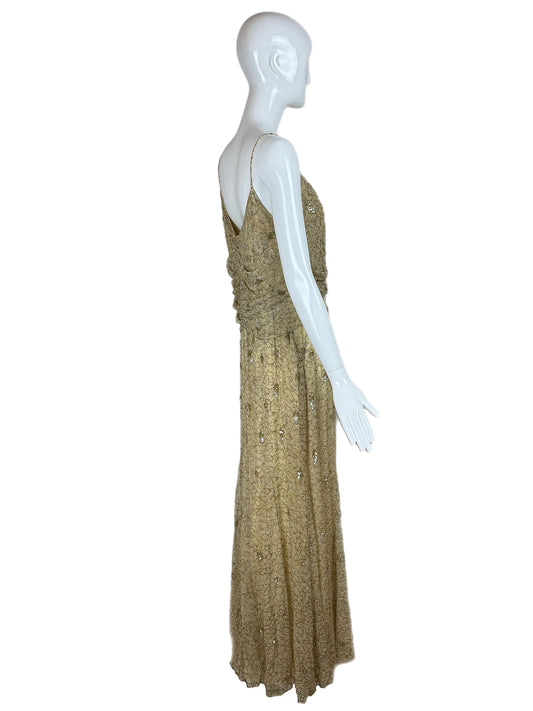 BADGLEY MISCHKA Vintage Silk Yellow Gold Embellished Gown