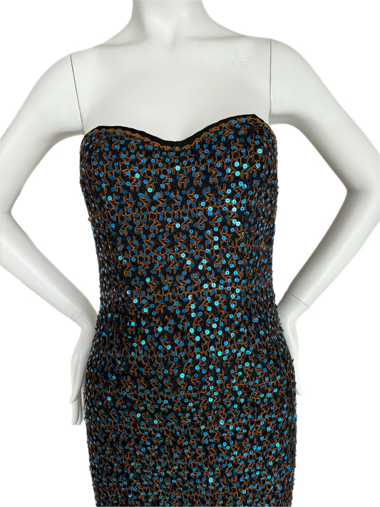 MISSONI Vintage Blue & Orange Sequin Semi-Sheer Maxi Dress