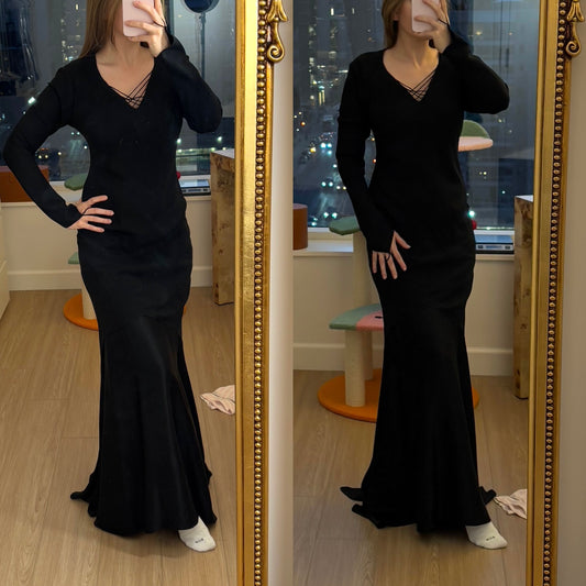 VERA WANG 90's Vintage Black Long Sleeve Evening Gown