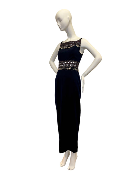 NINA RICCI Vintage Navy Blue Embellished Cut-Out Gown