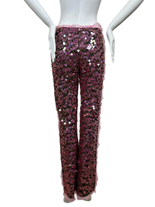 FENDI IT40 2000 Vintage Pink Sequin + Ruffle Pants