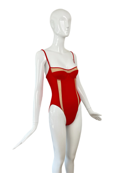 HERVE LEGER 90's Vintage Red Sheer High Cut Swimsuit