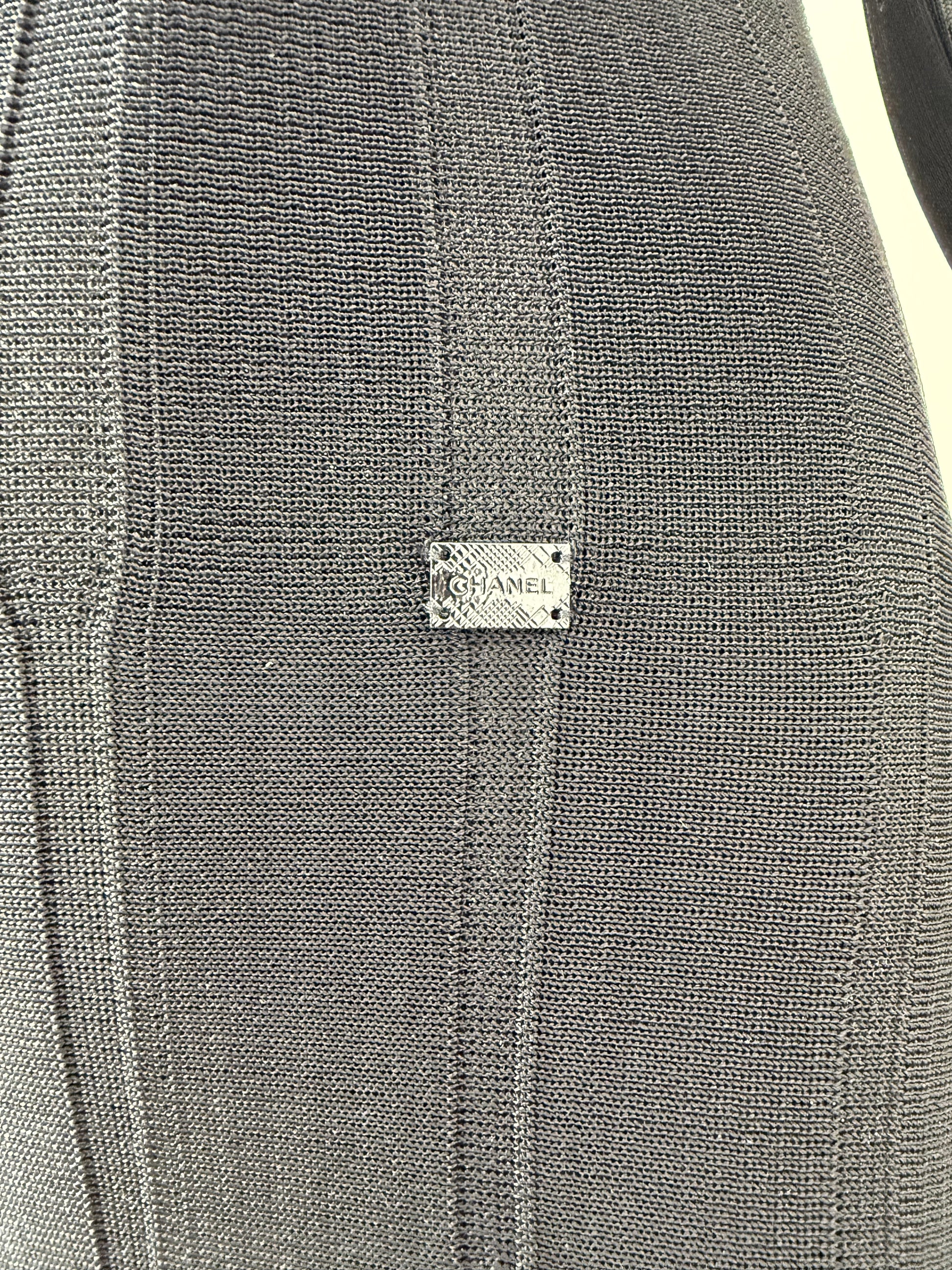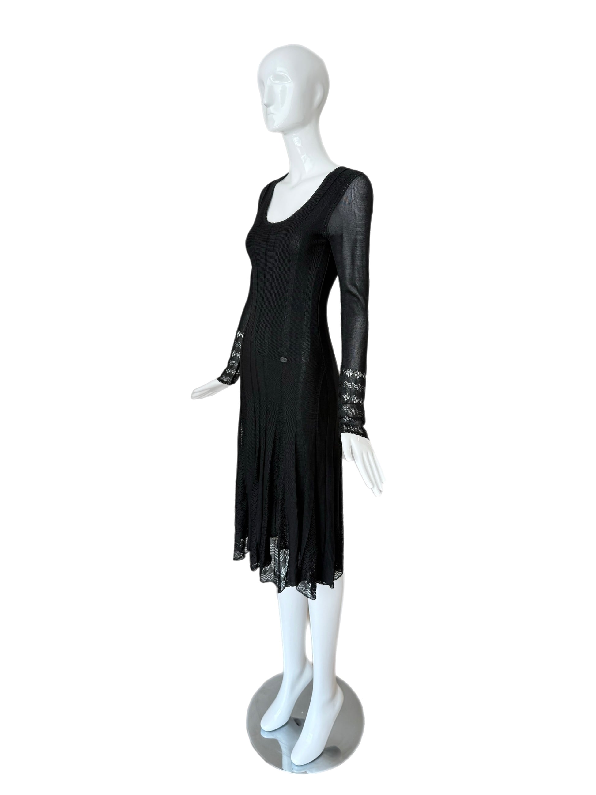 CHANEL 2005 Vintage Long Sleeve Black Lace Pointelle Dress