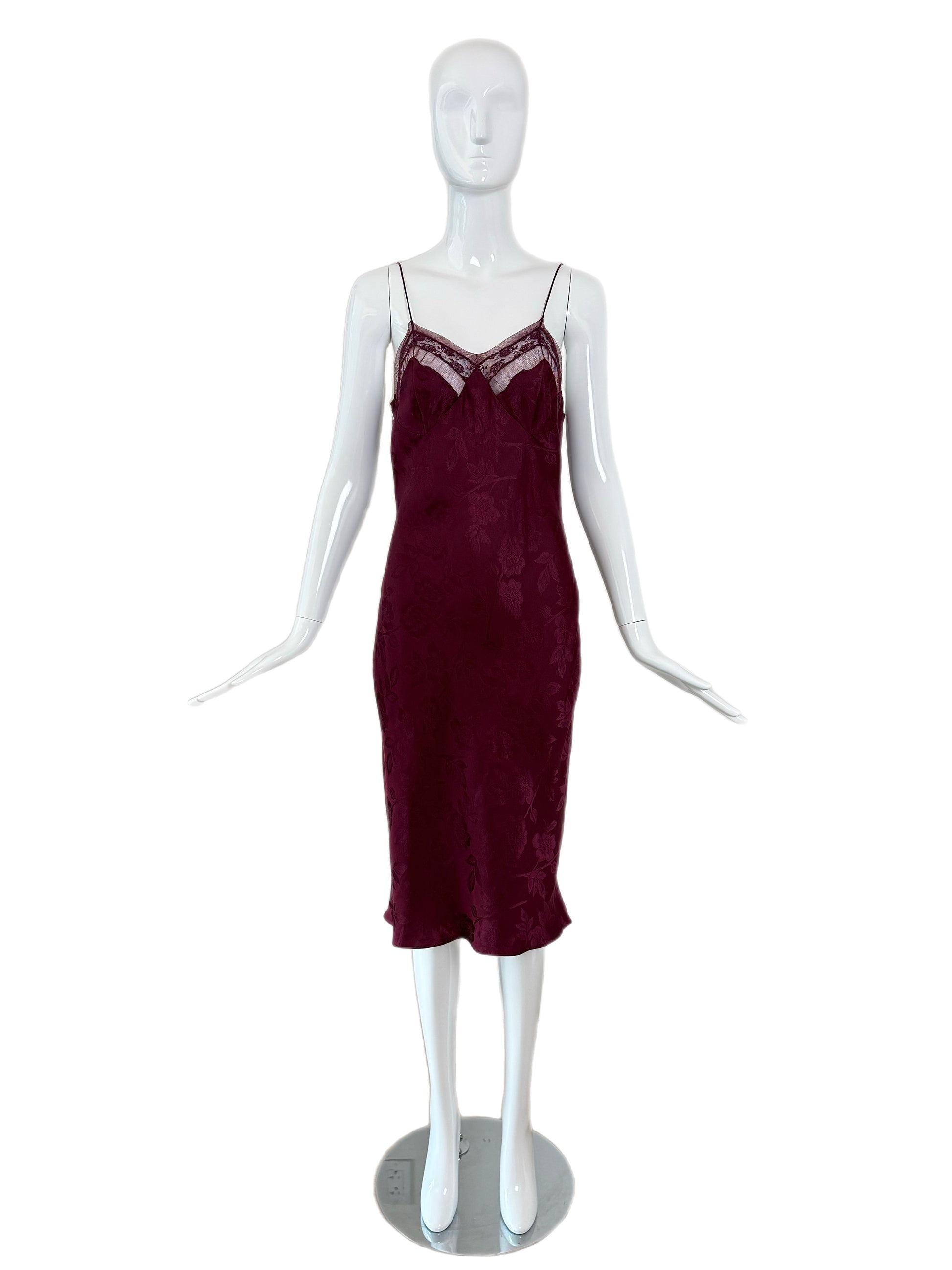 DIOR by JOHN GALLIANO 2005 Vintage Silk Burgundy Floral Print Midi Dress