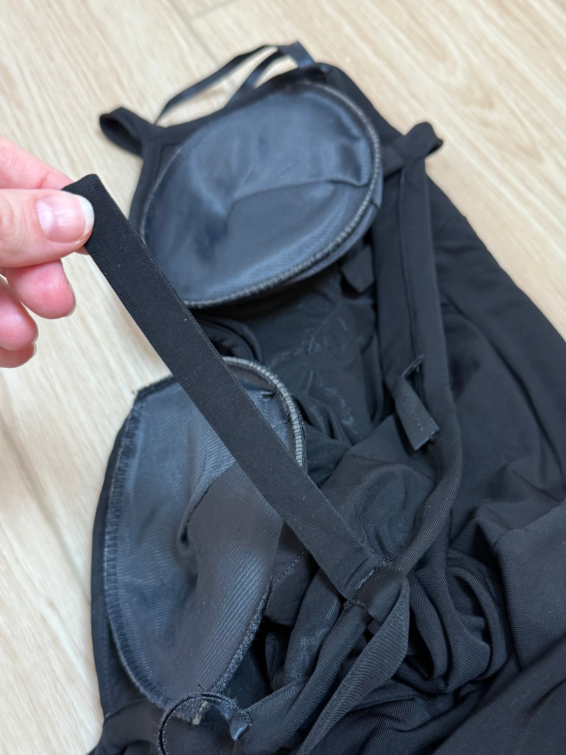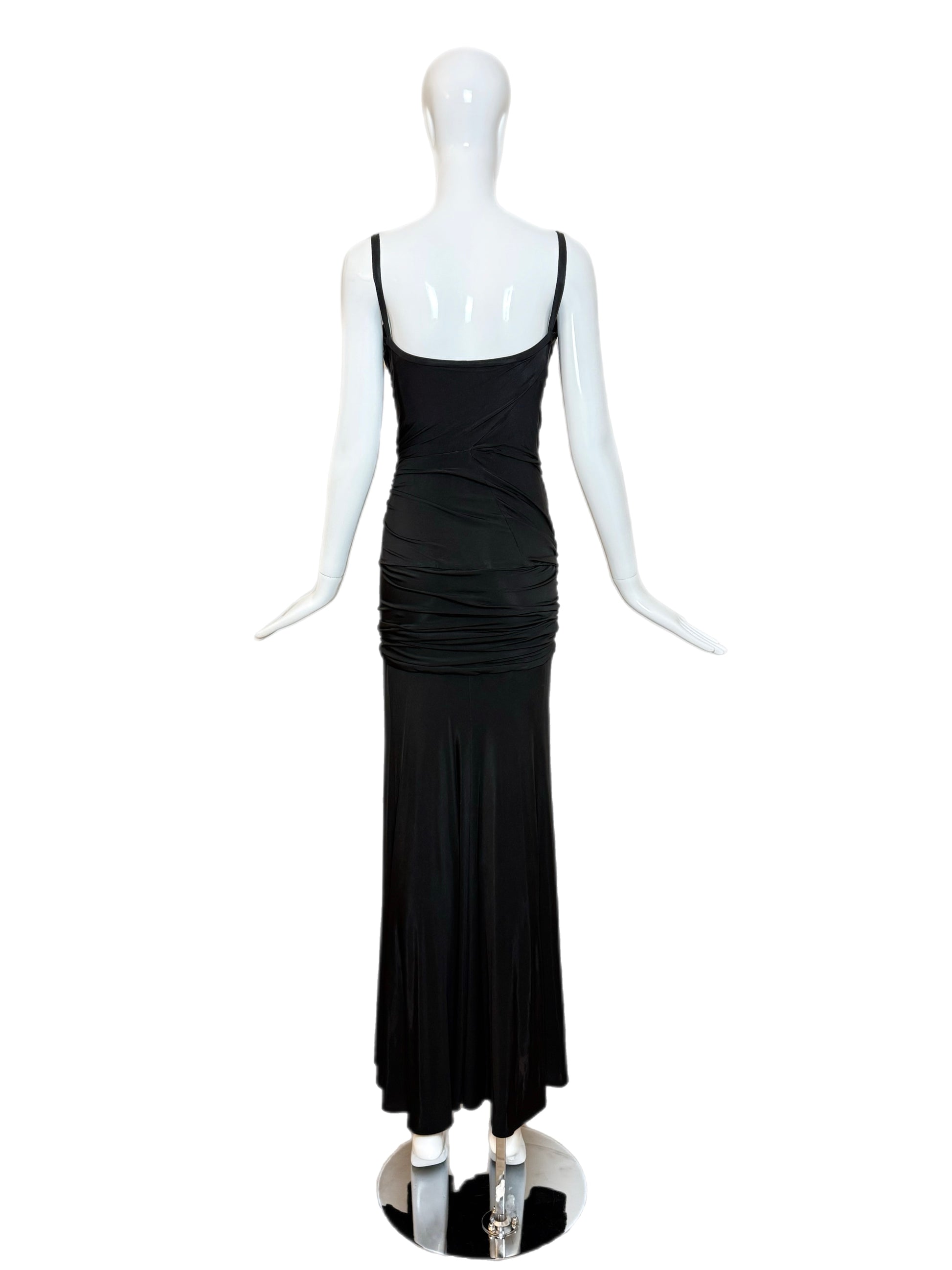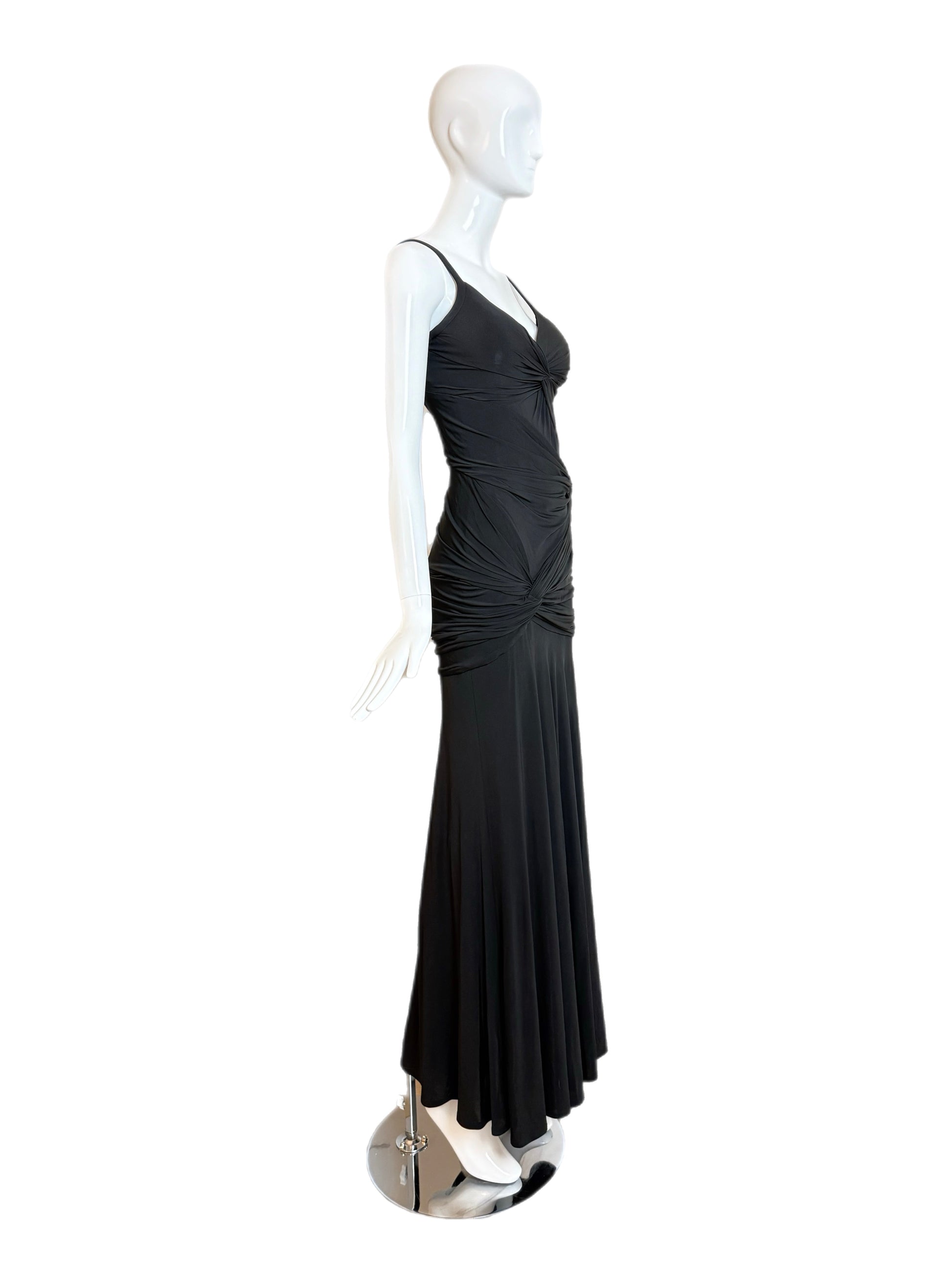 DONNA KARAN Vintage Black Ruched Knotted Evening Gown