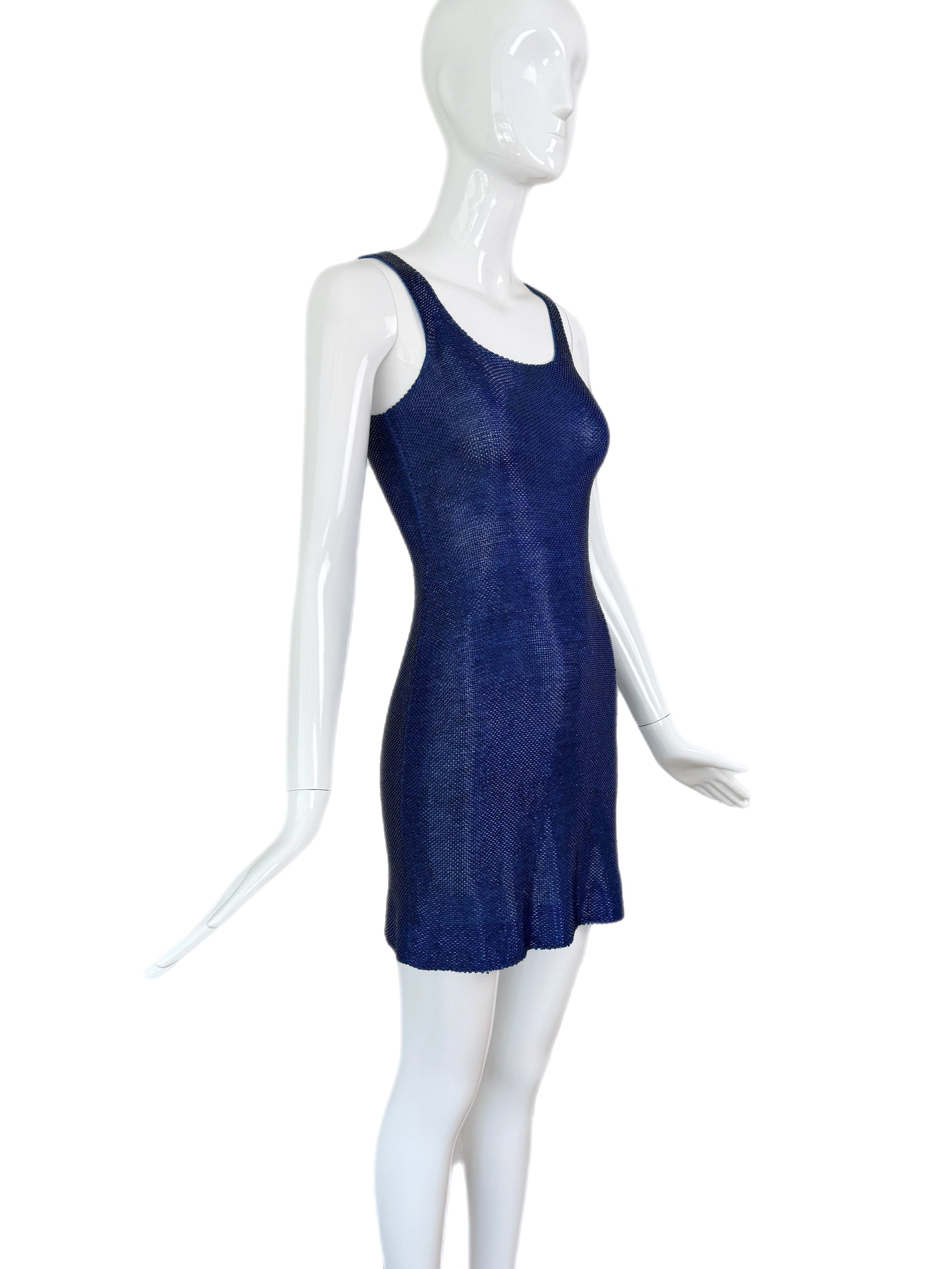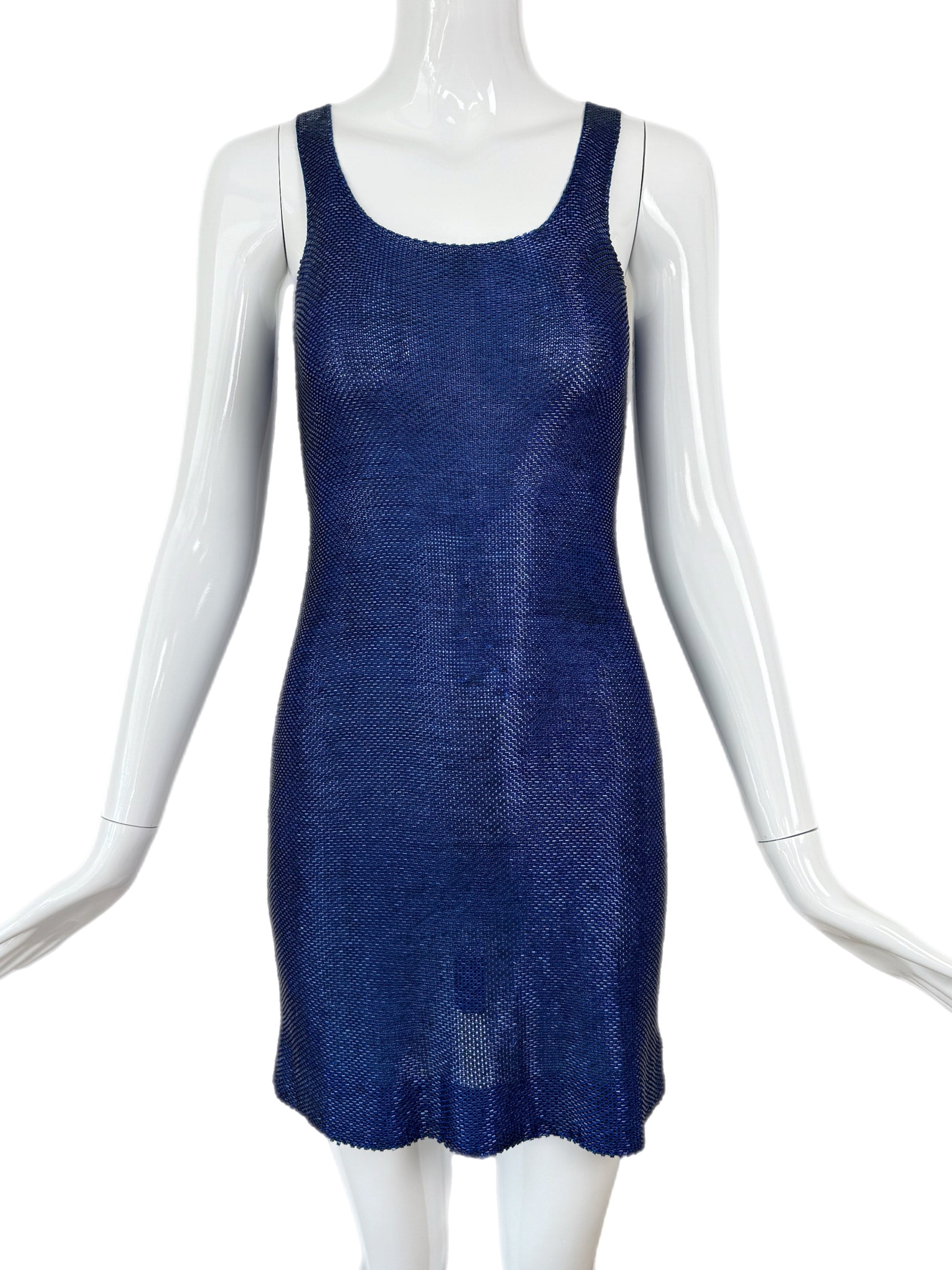 FRED HAYMAN 90's Vintage Electric Blue Beaded Mini Dress