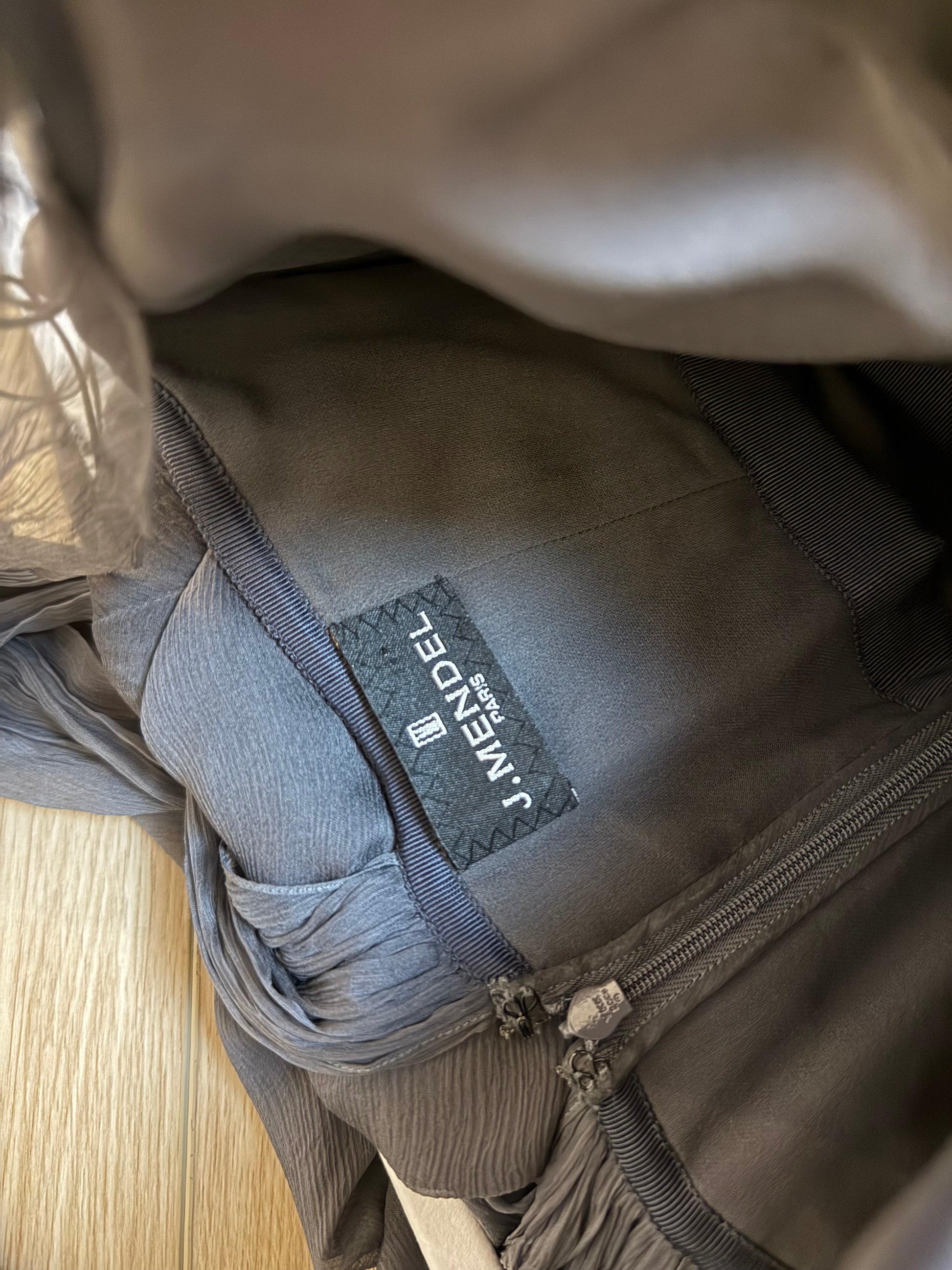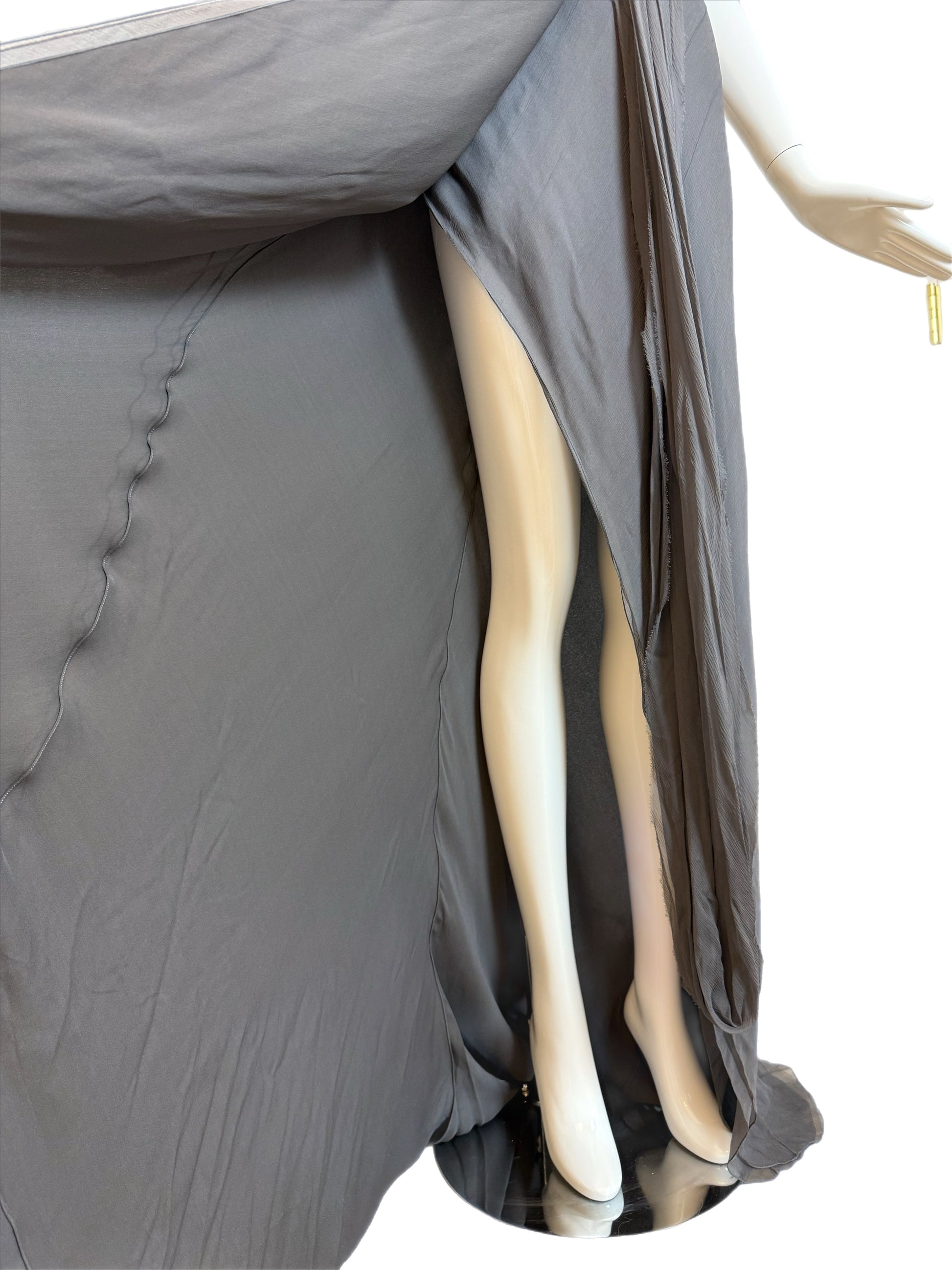 J. MENDEL Vintage Grey Silk Evening Gown w. Long Train