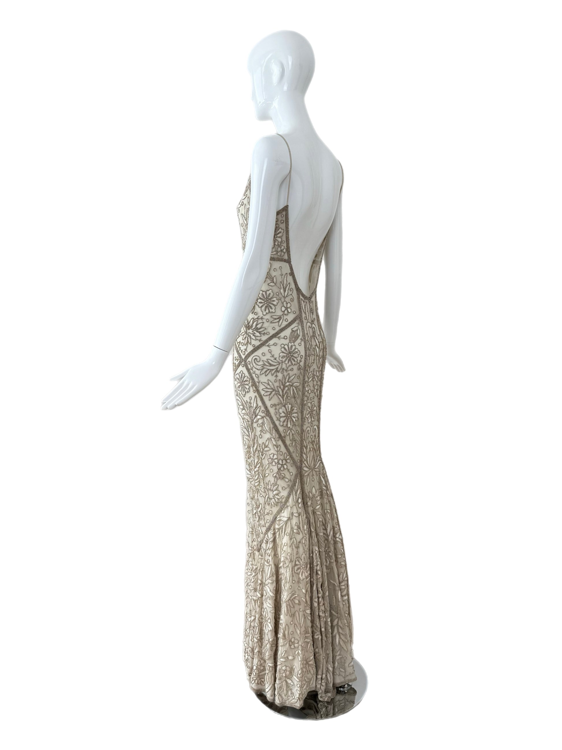LES HABITUDES 90's Vintage Couture Silk Hand-Beaded Evening Gown