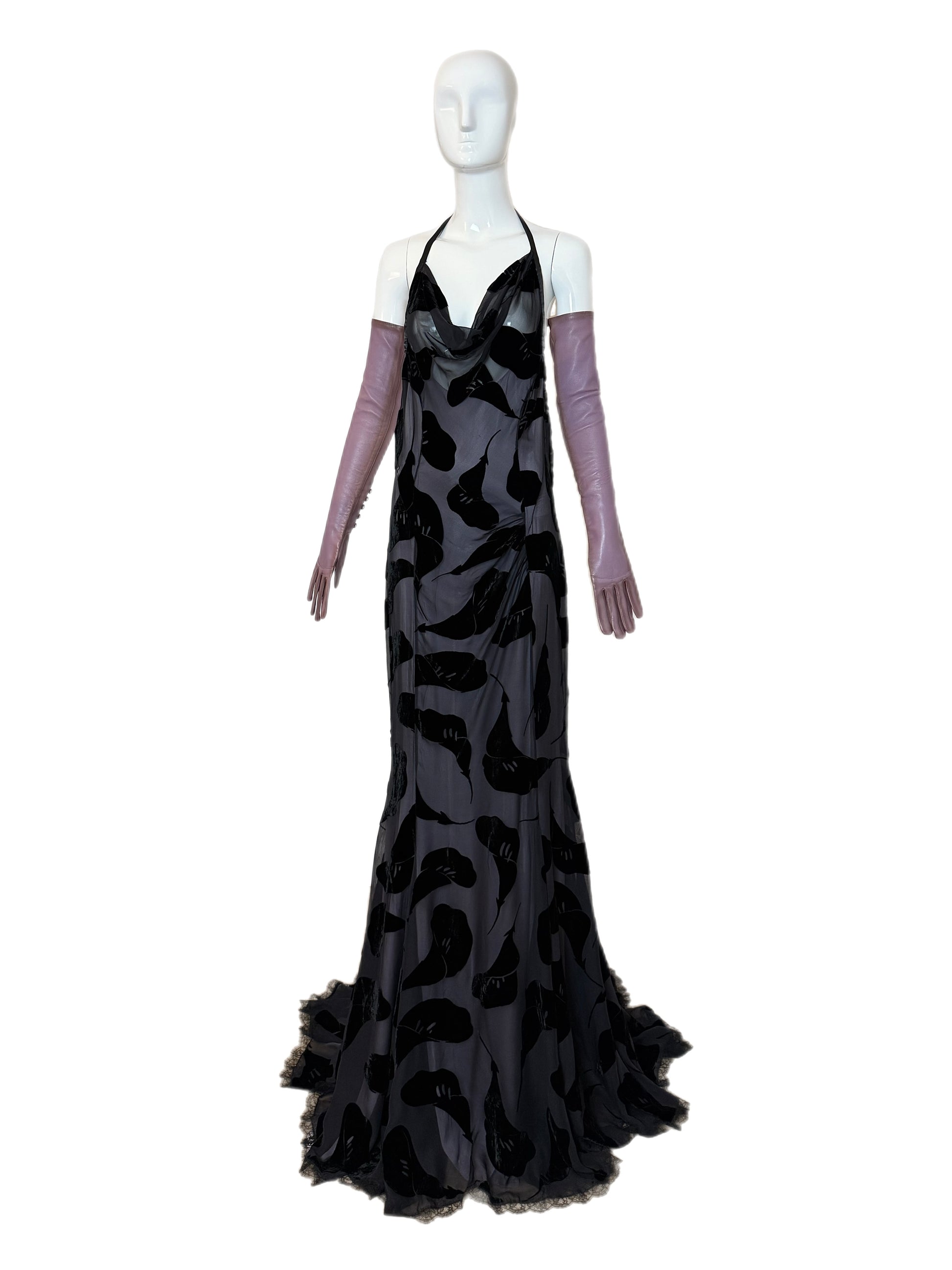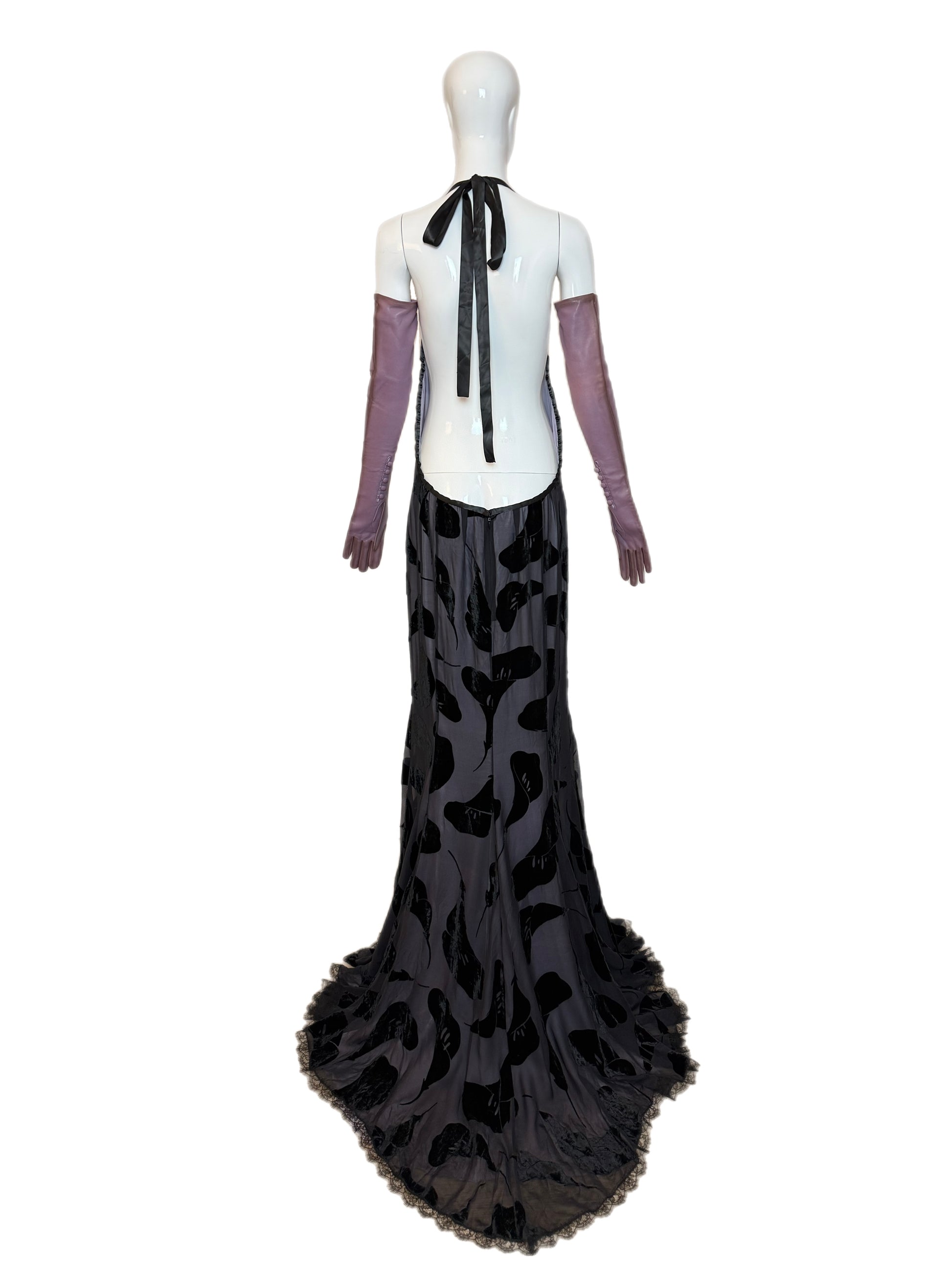 NINA RICCI 2011 Vintage Runway Full Look: Backless Gown + Leather Gloves