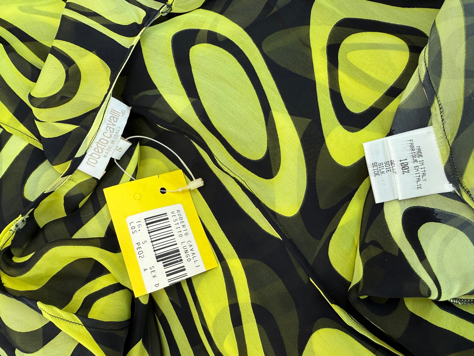 ROBERTO CAVALLI 2001 Vintage Runway Silk Psychedelic Maxi Gown