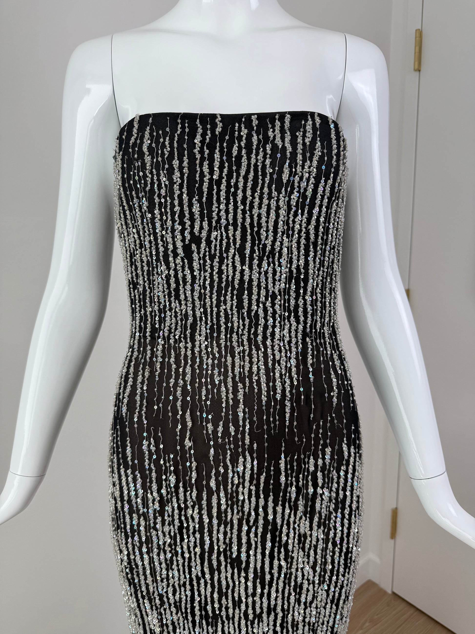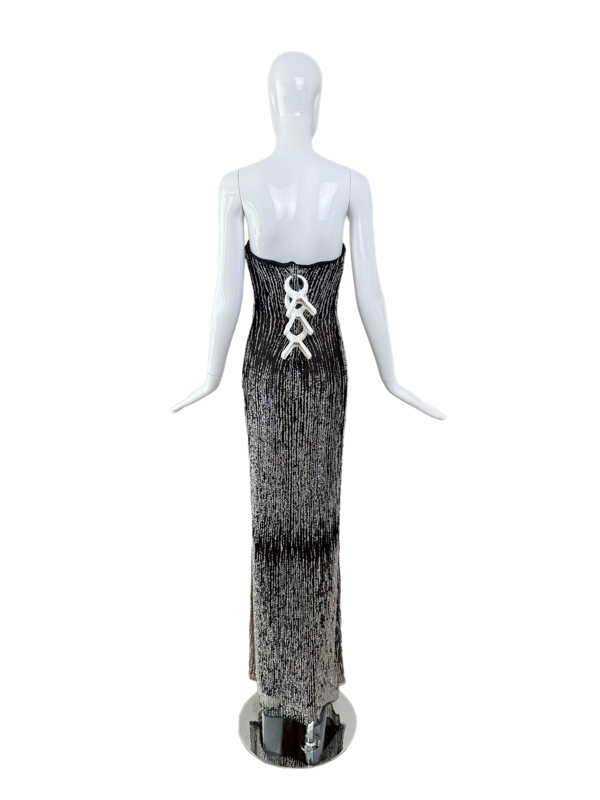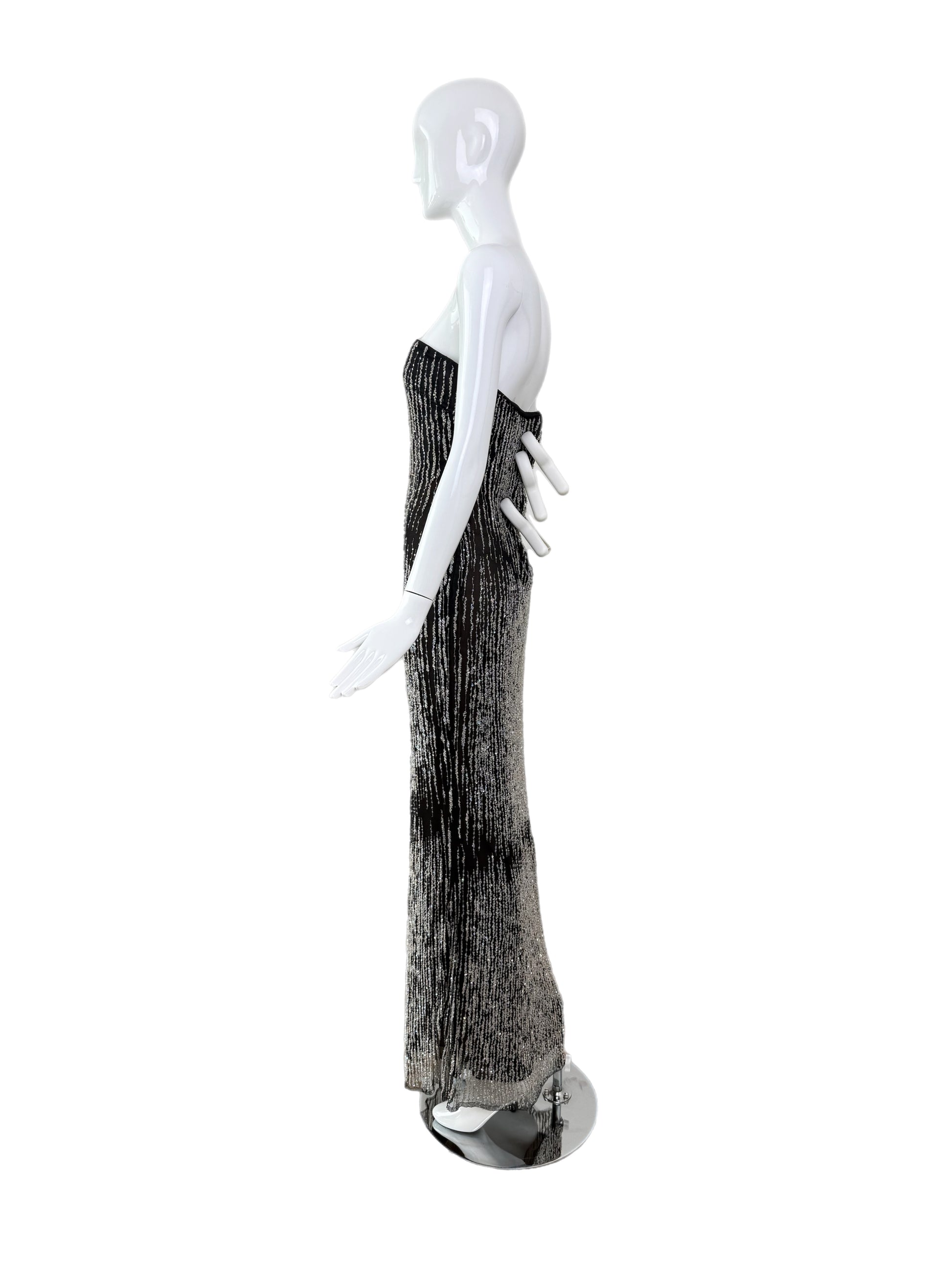 VERA WANG 1999 Vintage Iridescent Beaded & Sequin Column Evening Gown